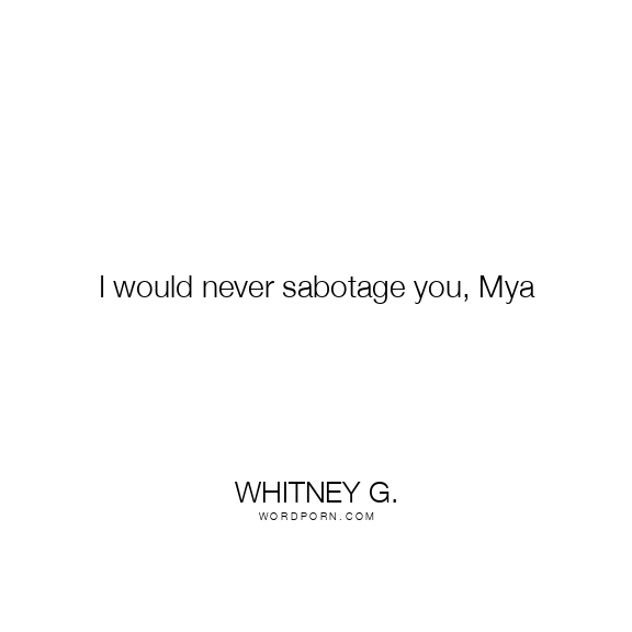 I would never sabotage you, Mya