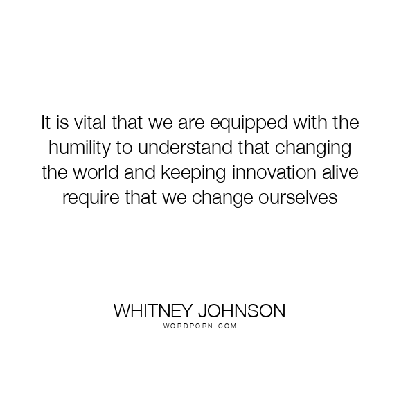 It is vital that we are equipped with the humility to understand that changing the world and keeping innovation alive require that we change ourselves