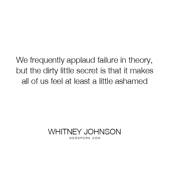 We frequently applaud failure in theory, but the dirty little secret is that it makes all of us feel at least a little ashamed
