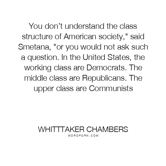 You don’t understand the class structure of American society," said Smetana, "or you would not ask such a question. In the United States, the working class are Democrats. The middle class are Republicans. The upper class are Communists