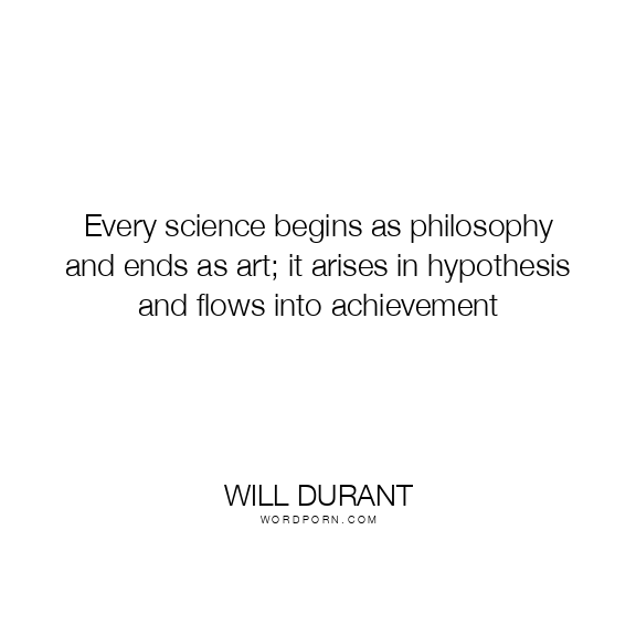 Every science begins as philosophy and ends as art; it arises in hypothesis and flows into achievement