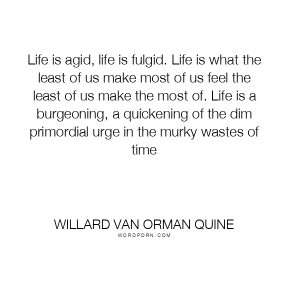 Life is agid, life is fulgid. Life is what the least of us make most of us feel the least of us make the most of. Life is a burgeoning, a quickening of the dim primordial urge in the murky wastes of time