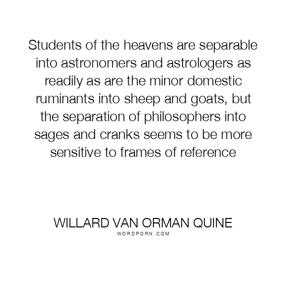 Students of the heavens are separable into astronomers and astrologers as readily as are the minor domestic ruminants into sheep and goats, but the separation of philosophers into sages and cranks seems to be more sensitive to frames of reference