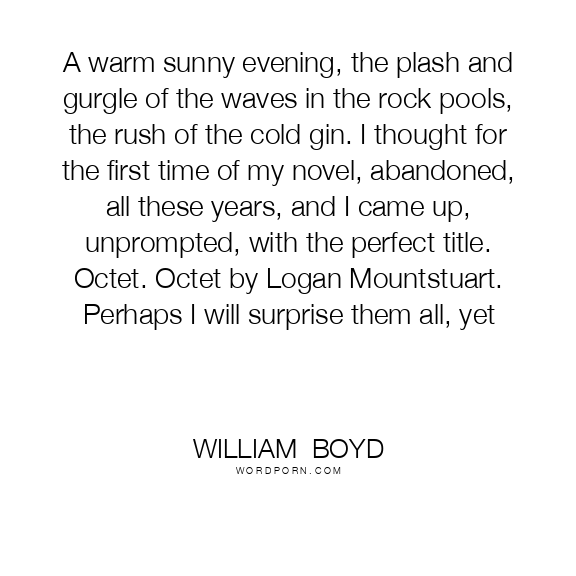 A warm sunny evening, the plash and gurgle of the waves in the rock pools, the rush of the cold gin. I thought for the first time of my novel, abandoned, all these years, and I came up, unprompted, with the perfect title. Octet. Octet by Logan Mountstuart. Perhaps I will surprise them all, yet