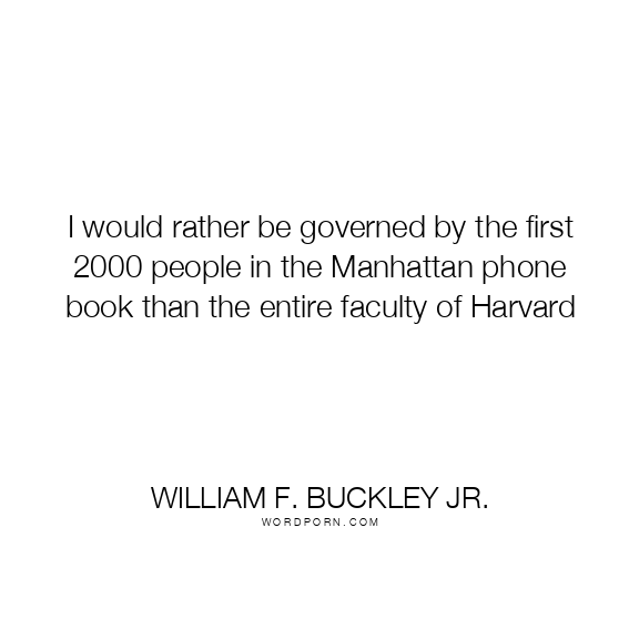 William F. Buckley Jr. quote. I would rather be governed by the first 2000 people in the Manhattan phone book than the entire faculty of Harvard