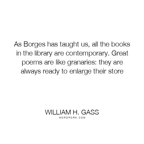 As Borges has taught us, all the books in the library are contemporary. Great poems are like granaries: they are always ready to enlarge their store