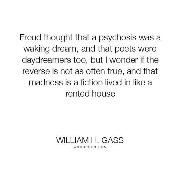 Freud thought that a psychosis was a waking dream, and that poets were daydreamers too, but I wonder if the reverse is not as often true, and that madness is a fiction lived in like a rented house