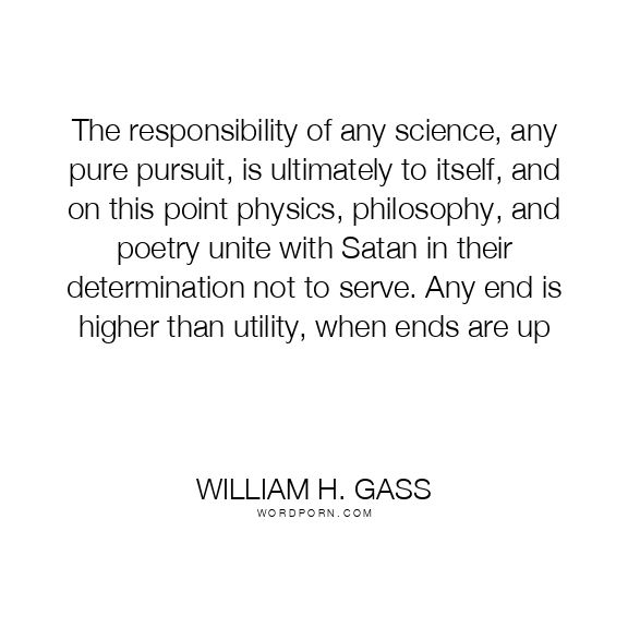 The responsibility of any science, any pure pursuit, is ultimately to itself, and on this point physics, philosophy, and poetry unite with Satan in their determination not to serve. Any end is higher than utility, when ends are up