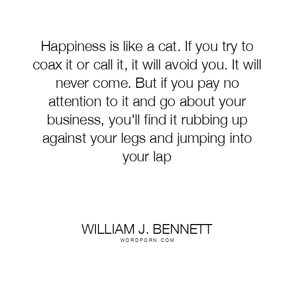Happiness is like a cat. If you try to coax it or call it, it will avoid you. It will never come. But if you pay no attention to it and go about your business, you'll find it rubbing up against your legs and jumping into your lap