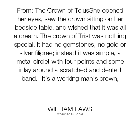 From: The Crown of TelusShe opened her eyes, saw the crown sitting on her bedside table, and wished that it was all a dream. The crown of Trist was nothing special. It had no gemstones, no gold or silver filigree; instead it was simple, a metal circlet with four points and some inlay around a scratched and dented band. “It’s a working man’s crown,