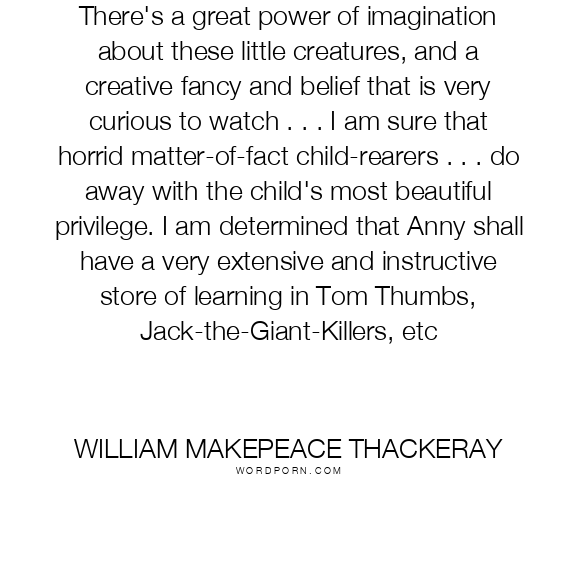 There's a great power of imagination about these little creatures, and a creative fancy and belief that is very curious to watch . . . I am sure that horrid matter-of-fact child-rearers . . . do away with the child's most beautiful privilege. I am determined that Anny shall have a very extensive and instructive store of learning in Tom Thumbs, Jack-the-Giant-Killers, etc