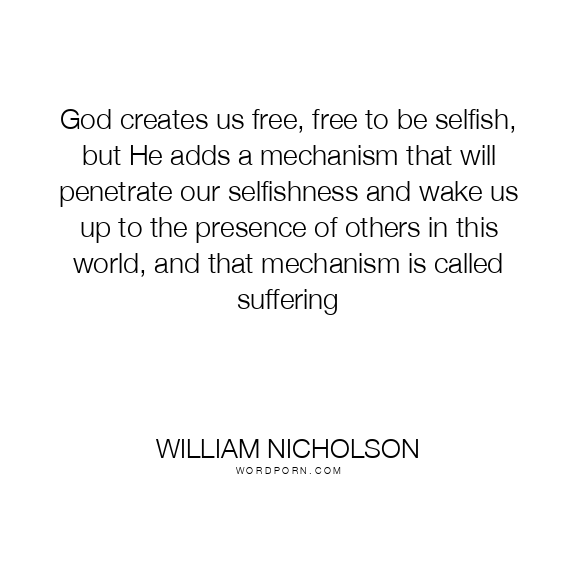 God creates us free, free to be selfish, but He adds a mechanism that will penetrate our selfishness and wake us up to the presence of others in this world, and that mechanism is called suffering