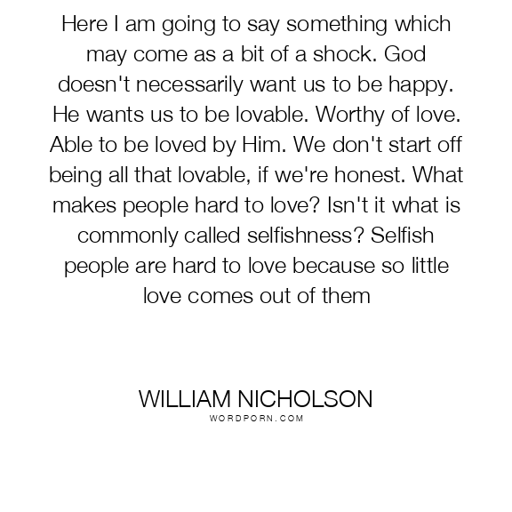 Here I am going to say something which may come as a bit of a shock. God doesn't necessarily want us to be happy. He wants us to be lovable. Worthy of love. Able to be loved by Him. We don't start off being all that lovable, if we're honest. What makes people hard to love? Isn't it what is commonly called selfishness? Selfish people are hard to love because so little love comes out of them