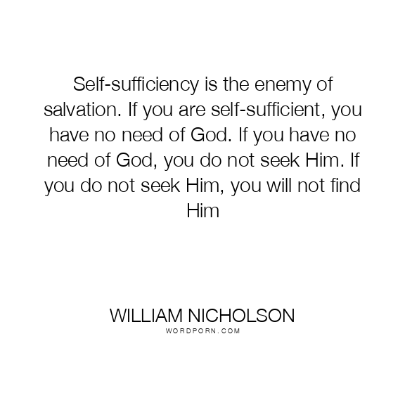 Self-sufficiency is the enemy of salvation. If you are self-sufficient, you have no need of God. If you have no need of God, you do not seek Him. If you do not seek Him, you will not find Him