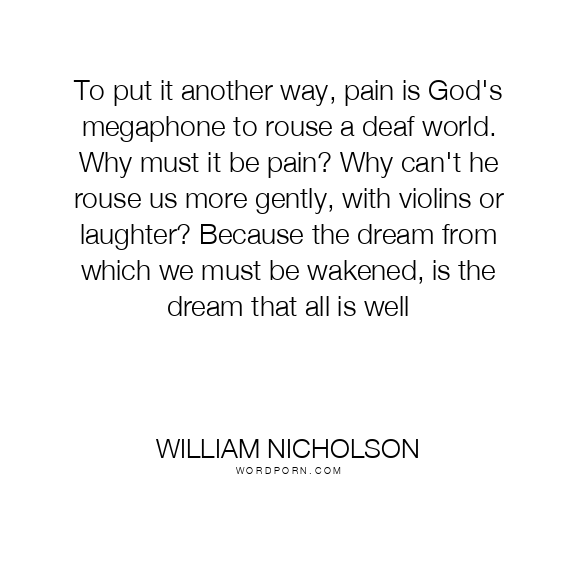 To put it another way, pain is God's megaphone to rouse a deaf world. Why must it be pain? Why can't he rouse us more gently, with violins or laughter? Because the dream from which we must be wakened, is the dream that all is well