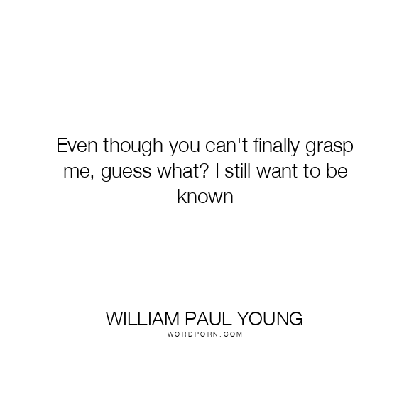 William Paul Young quote. Even though you can't finally grasp me, guess what? I still want to be known