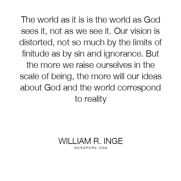 The world as it is is the world as God sees it, not as we see it. Our vision is distorted, not so much by the limits of finitude as by sin and ignorance. But the more we raise ourselves in the scale of being, the more will our ideas about God and the world correspond to reality