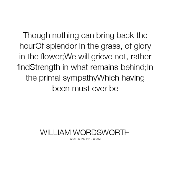 Though nothing can bring back the hourOf splendor in the grass, of glory in the flower;We will grieve not, rather findStrength in what remains behind;In the primal sympathyWhich having been must ever be