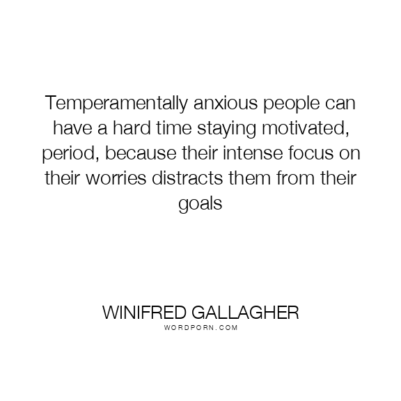 Temperamentally anxious people can have a hard time staying motivated, period, because their intense focus on their worries distracts them from their goals