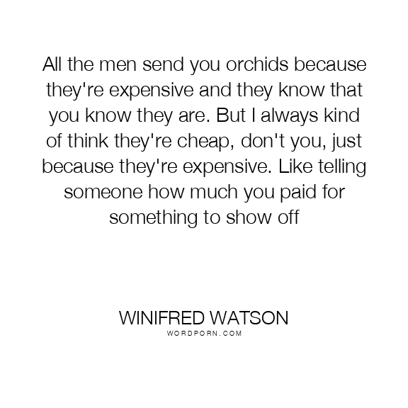 All the men send you orchids because they're expensive and they know that you know they are. But I always kind of think they're cheap, don't you, just because they're expensive. Like telling someone how much you paid for something to show off