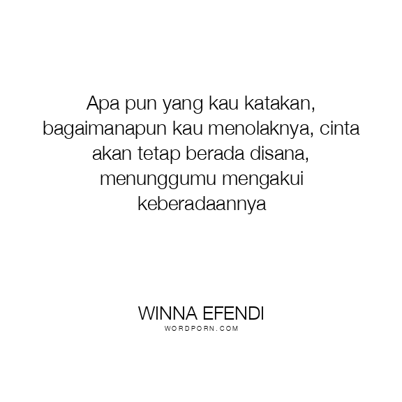 Apa pun yang kau katakan, bagaimanapun kau menolaknya, cinta akan tetap berada disana, menunggumu mengakui keberadaannya