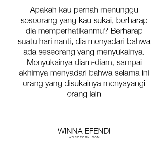 Apakah kau pernah menunggu seseorang yang kau sukai, berharap dia memperhatikanmu? Berharap suatu hari nanti, dia menyadari bahwa ada seseorang yang menyukainya. Menyukainya diam-diam, sampai akhirnya menyadari bahwa selama ini orang yang disukainya menyayangi orang lain