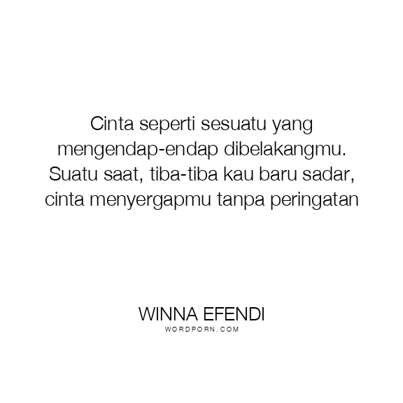 Cinta seperti sesuatu yang mengendap-endap dibelakangmu. Suatu saat, tiba-tiba kau baru sadar, cinta menyergapmu tanpa peringatan