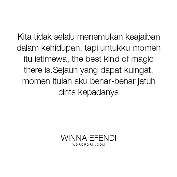 Kita tidak selalu menemukan keajaiban dalam kehidupan, tapi untukku momen itu istimewa, the best kind of magic there is.Sejauh yang dapat kuingat, momen itulah aku benar-benar jatuh cinta kepadanya