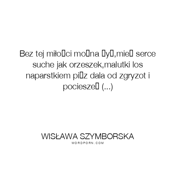 Bez tej miłości można żyć,mieć serce suche jak orzeszek,malutki los naparstkiem pićz dala od zgryzot i pocieszeń (...)
