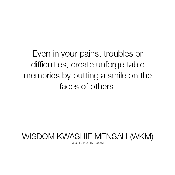 Even in your pains, troubles or difficulties, create unforgettable memories by putting a smile on the faces of others'