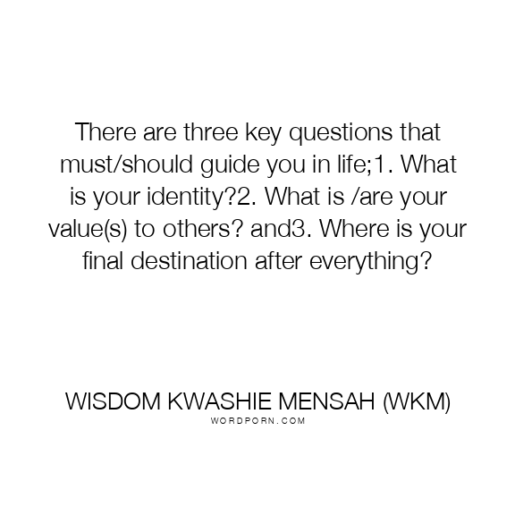 There are three key questions that must/should guide you in life;1. What is your identity?2. What is /are your value(s) to others? and3. Where is your final destination after everything?