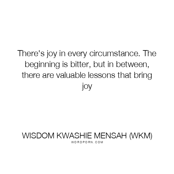 There's joy in every circumstance. The beginning is bitter, but in between, there are valuable lessons that bring joy