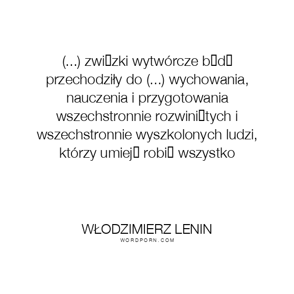 (...) związki wytwórcze będą przechodziły do (...) wychowania, nauczenia i przygotowania wszechstronnie rozwiniętych i wszechstronnie wyszkolonych ludzi, którzy umieją robić wszystko