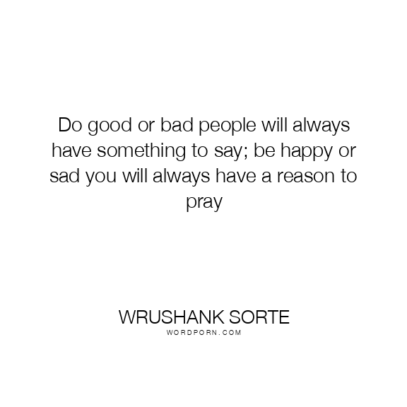 Do good or bad people will always have something to say; be happy or sad you will always have a reason to pray