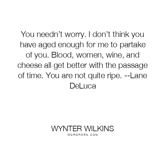 You needn’t worry. I don’t think you have aged enough for me to partake of you. Blood, women, wine, and cheese all get better with the passage of time. You are not quite ripe. --Lane DeLuca