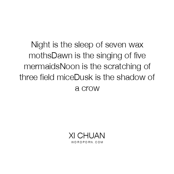 Night is the sleep of seven wax mothsDawn is the singing of five mermaidsNoon is the scratching of three field miceDusk is the shadow of a crow