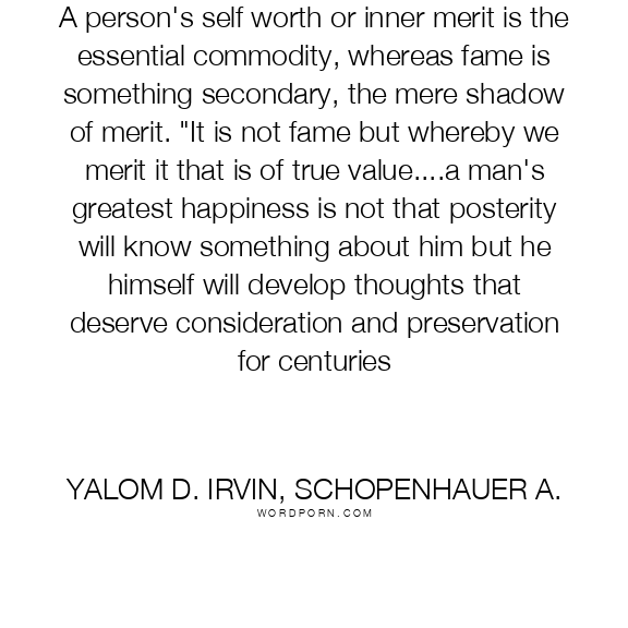 A person's self worth or inner merit is the essential commodity, whereas fame is something secondary, the mere shadow of merit. "It is not fame but whereby we merit it that is of true value....a man's greatest happiness is not that posterity will know something about him but he himself will develop thoughts that deserve consideration and preservation for centuries