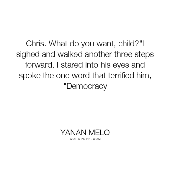 Chris. What do you want, child?"I sighed and walked another three steps forward. I stared into his eyes and spoke the one word that terrified him, "Democracy