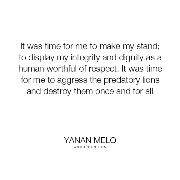 It was time for me to make my stand; to display my integrity and dignity as a human worthful of respect. It was time for me to aggress the predatory lions and destroy them once and for all