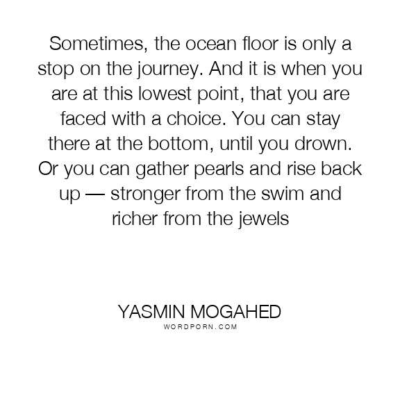 Sometimes, the ocean floor is only a stop on the journey. And it is when you are at this lowest point, that you are faced with a choice. You can stay there at the bottom, until you drown. Or you can gather pearls and rise back up — stronger from the swim and richer from the jewels