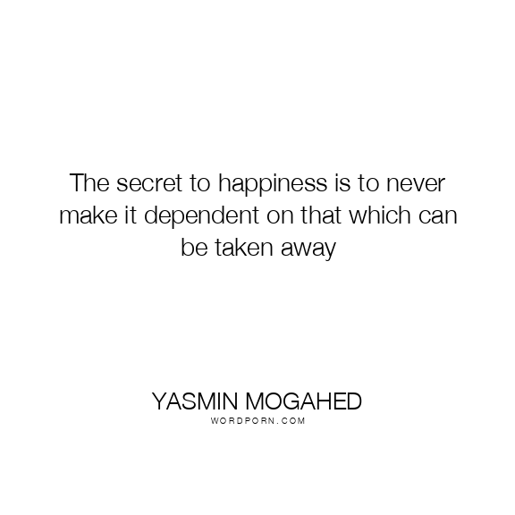 The secret to happiness is to never make it dependent on that which can be taken away