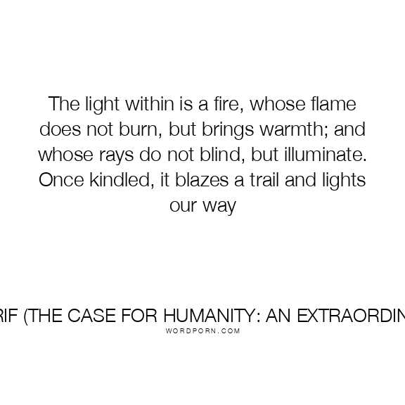 The light within is a fire, whose flame does not burn, but brings warmth; and whose rays do not blind, but illuminate. Once kindled, it blazes a trail and lights our way