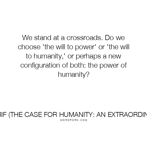 We stand at a crossroads. Do we choose 'the will to power' or 'the will to humanity,' or perhaps a new configuration of both: the power of humanity?