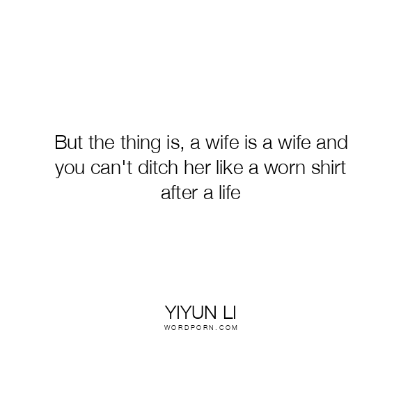 But the thing is, a wife is a wife and you can't ditch her like a worn shirt after a life