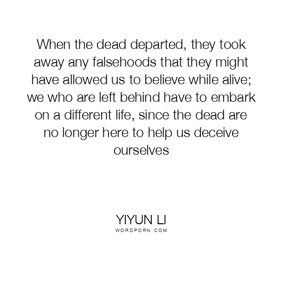 When the dead departed, they took away any falsehoods that they might have allowed us to believe while alive; we who are left behind have to embark on a different life, since the dead are no longer here to help us deceive ourselves