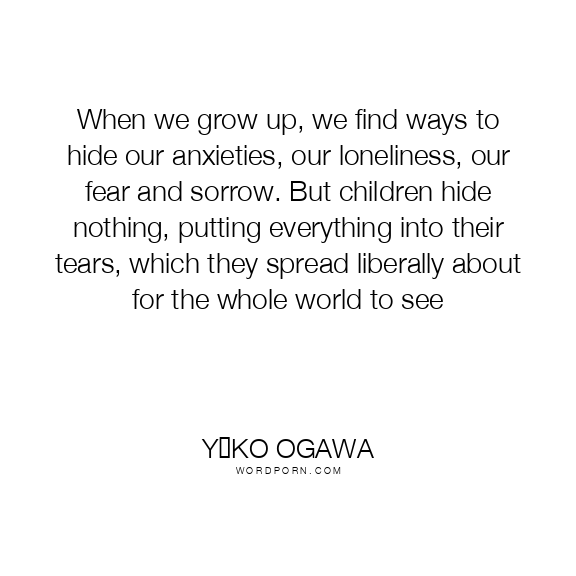 When we grow up, we find ways to hide our anxieties, our loneliness, our fear and sorrow. But children hide nothing, putting everything into their tears, which they spread liberally about for the whole world to see