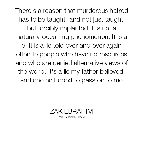 There's a reason that murderous hatred has to be taught- and not just taught, but forcibly implanted. It's not a naturally-occurring phenomenon. It is a lie. It is a lie told over and over again- often to people who have no resources and who are denied alternative views of the world. It's a lie my father believed, and one he hoped to pass on to me