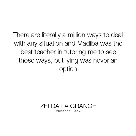 There are literally a million ways to deal with any situation and Madiba was the best teacher in tutoring me to see those ways, but lying was never an option