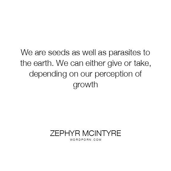 Copy Image We are seeds as well as parasites to the earth. We can either give or take, depending on our perception of growth Moms Typewriter A A SAVE THIS IMAGE