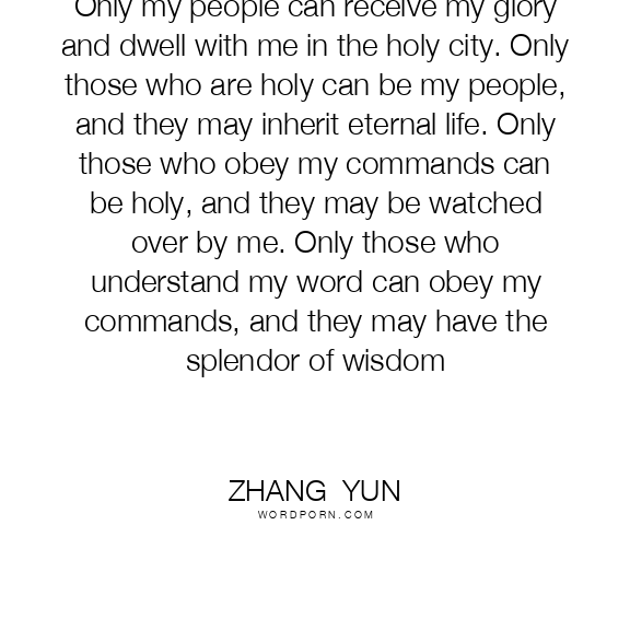 Only my people can receive my glory and dwell with me in the holy city. Only those who are holy can be my people, and they may inherit eternal life. Only those who obey my commands can be holy, and they may be watched over by me. Only those who understand my word can obey my commands, and they may have the splendor of wisdom